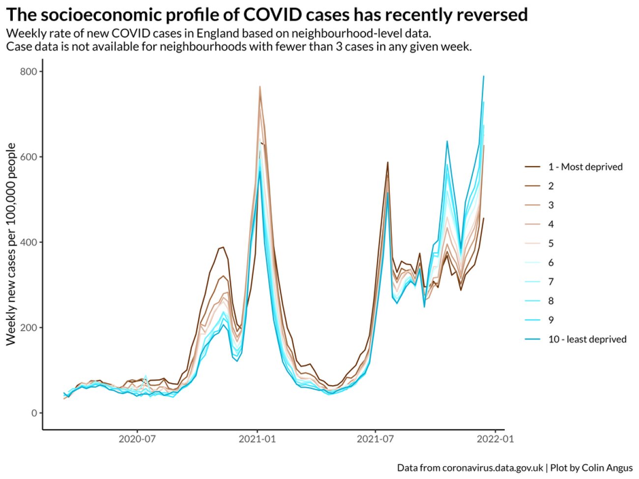 The fact that omicron can overcome the wall of protection that has been built up in deprived areas through such high levels of prior infection means that there is a risk that these inequalities are going to be repeated in the coming weeks and months. Just when it seemed as though there was a light at the end of the tunnel for many living in deprived areas, the light began to fade.