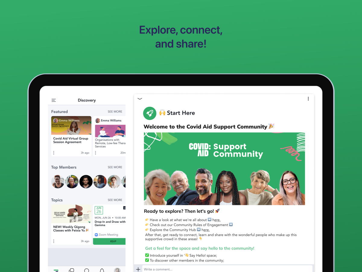 You can find the Covid Aid Support Community app, available for mobile devices including tablet, on the: