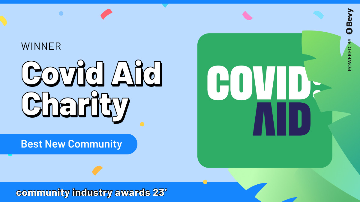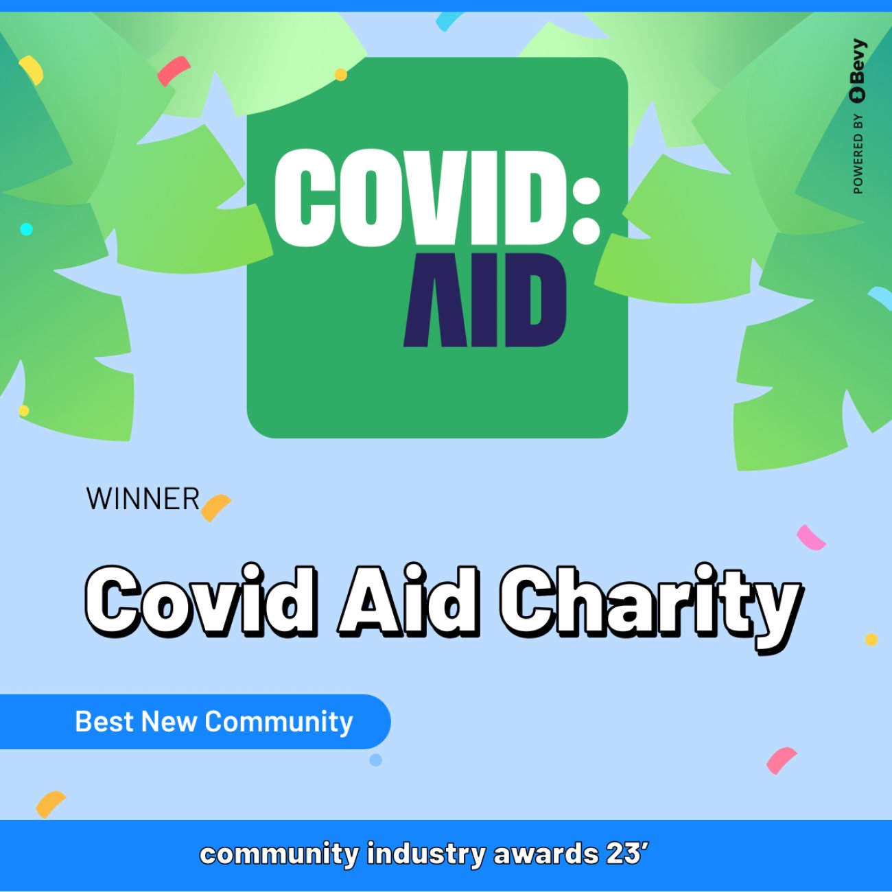Award-winning charity, Covid Aid wins “Best New Community” at the CMX Global Community Industry Awards 2023.
